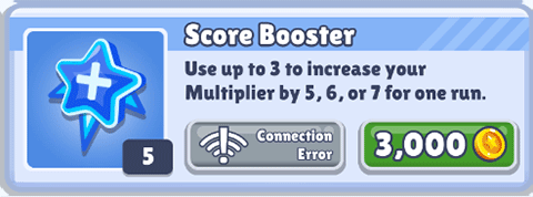 增加游戏币倍数(Score Booster)是个一次性的道具,用了之后,能临时把你金币转换成分数的倍率再额外增加5倍,刷分神器。