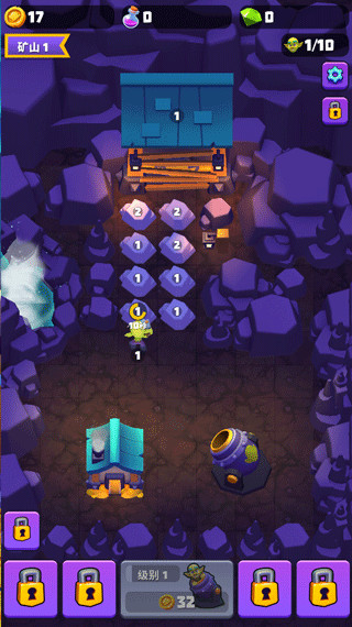 1、在商店里利用收集的招募各种不同能力的哥布林帮助自己开矿和采矿;