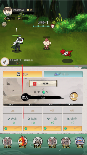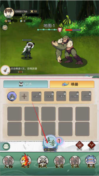 去“唤兽”界面,点那个“唤兽”按钮抽宠物,每抽一次,主角就能拿到1点经验。没错,升级经验就是这么来的。
