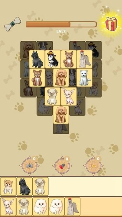 4、玩家主要就是控制各种各样的小狗,通过合并消除来闯关,目标很明确。