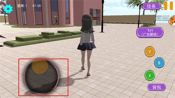 2、 想要在校园里自由走动?很简单,看看屏幕左下角那个虚拟摇杆,手指在上面滑动,你的角色就会跟着你的心意到处溜达了。