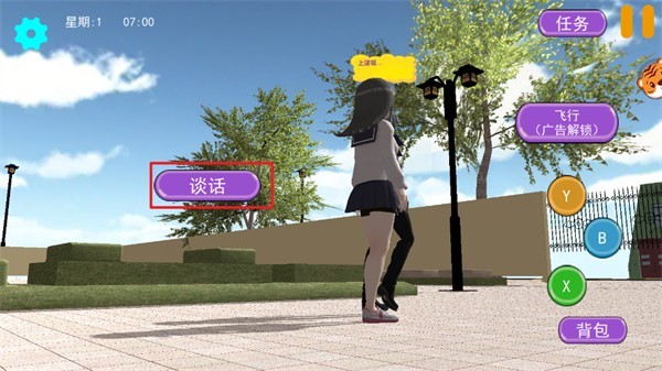 3、 在校园里闲逛时,你肯定会遇到各种各样的同学和老师。想跟他们聊聊天?那就凑近他们,当【谈话】的选项跳出来时,别犹豫,点它就对了。