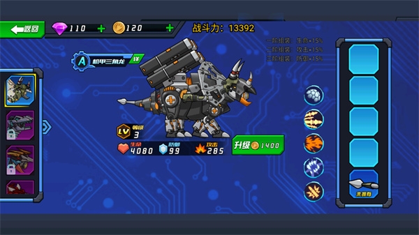 养成系统做得挺深,什么炮弹、装甲都能换,就是个大坑。想把自己的恐龙战队搞毕业,得花点功夫。主要目标就是干翻所有对手。