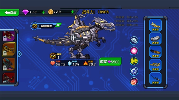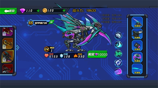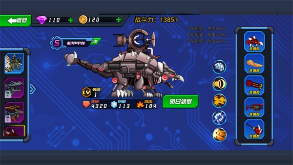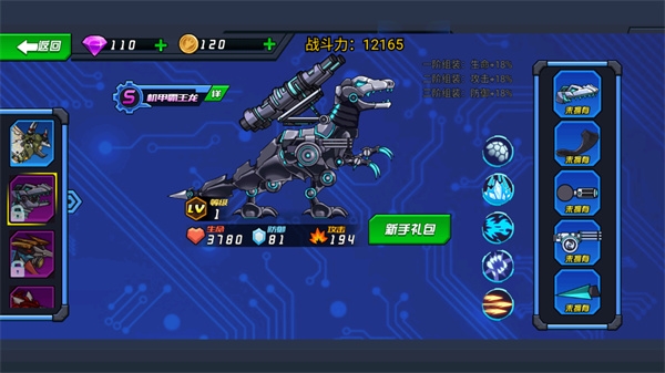 选完就该拼零件了,跟玩模型似的。拖动右边的部件给恐龙装上,组装完属性会变强。