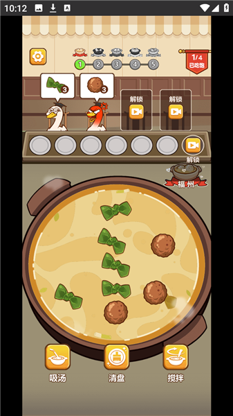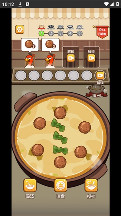 6、还有一个小技巧,就是点击“吸汤”功能,这个操作可以让锅底的食材浮上来,方便你进行选择和搭配。