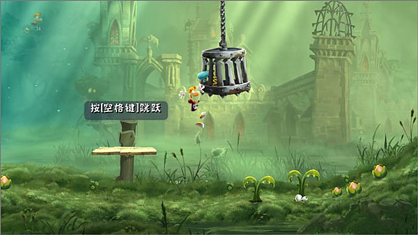 4、这里得有点操作,先跳到半空中,把精灵救了之后再一刀砍断绳子,顺序不能错。