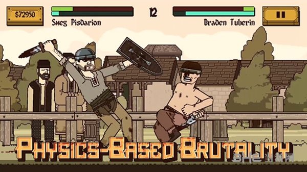 这游戏说白了就是个基于物理引擎的中世纪大乱斗,专门让你跟你的“好兄弟”们在竞技场里互殴。场景那叫一个残酷,刀、斧、剑、钉头锤、连枷,能用的家伙事儿都给你了,上去就是干。别看是像素画风,但2D物理效果和那些血腥场面结合得相当到位,打起来那叫一个带感。操作也挺奇葩,屏幕左右两边分别按住,就是控制你的两只手。游戏里有上百种武器、盾牌、身体、腿、脑袋的装备,能凑出几千种要命的组合。能不能站到最后,就看你的本事了。