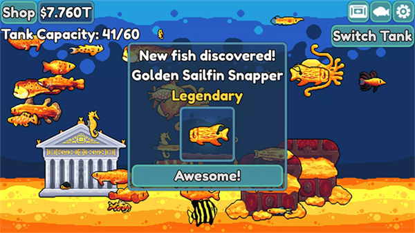 3、解锁更高价值鱼类放入鱼缸,通过观赏获取持续门票收益;