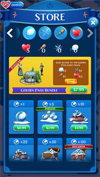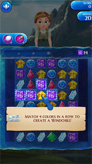 冰雪奇缘冰纷乐是一款根据冰雪奇缘制作的消除游戏,玩家可以和安娜,艾莎一起展开冒险,游戏不只是简单消除,还加入了很多有趣的目标,比如:清除雪块,让物品掉到最下面等,每一关都有不同任务,需要动脑完成挑战,通关后还能获得各种道具,帮助玩家更轻松过关,关卡丰富,玩起来不会无聊。