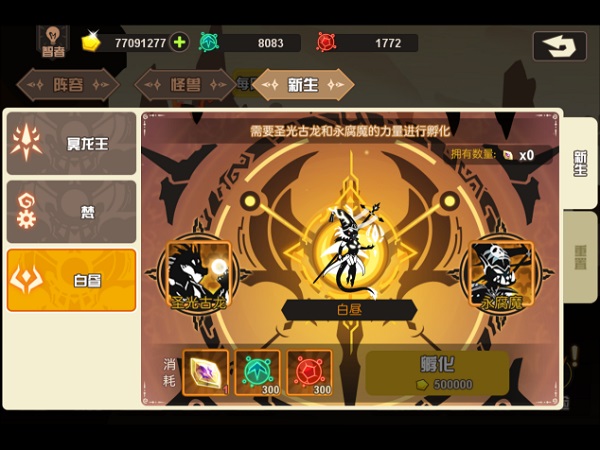 孵化条件:白昼新生结晶*1(140关掉落)+300进化孢子+300强化孢子+50W金币