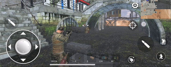 2、操作很简单,左手边摇杆控制移动,右手边是跳、开火和下蹲。游戏有时间限制,你得在倒计时结束前完成任务。