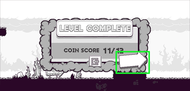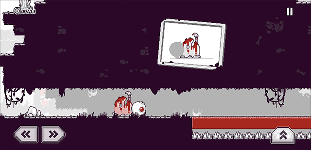 9、直接跳上台阶,俩眼球一碰,这关就算过了。通关后点绿框里的按钮就能进下一关。