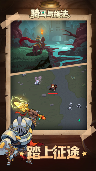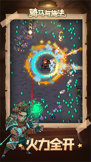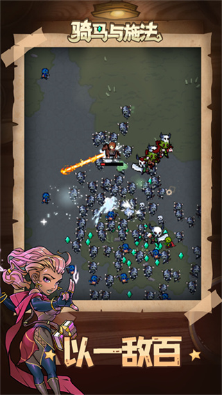 骑马与施法是一款像素风格的动作游戏,进入游戏后玩家可以骑着马在地图上到处冒险,遇到僵尸和怪物就用武器和魔法打败它们,游戏中可以收集金币和经验,让自己变得更强,还可以搭配不同技能和装备,玩出不同风格,越到后面敌人越多,需要动点脑筋才能赢,玩起来很刺激也很有挑战。