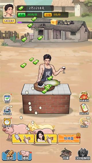 2、每日可完成任务获取奖励,通过提升猪只等级解锁更高收益与品种
