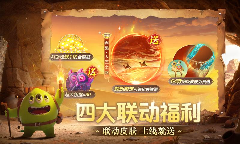 - 款联动皮肤免费送!65款绝版珍稀皮肤限时上架!光环三件套、孢子、音效包!楼兰联动专属关键词等你解锁;