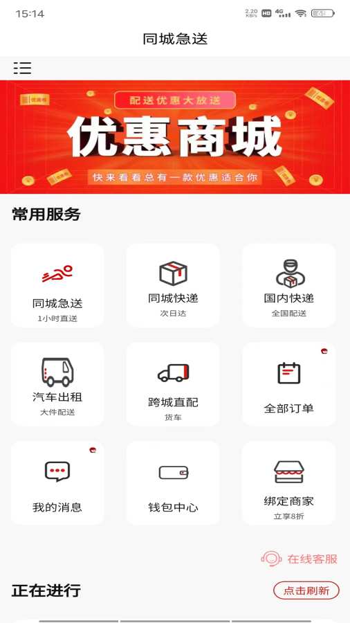 3、提供各种同城配送服务,如同城急送,汽车出租,跨城直配等丰富的功能。
