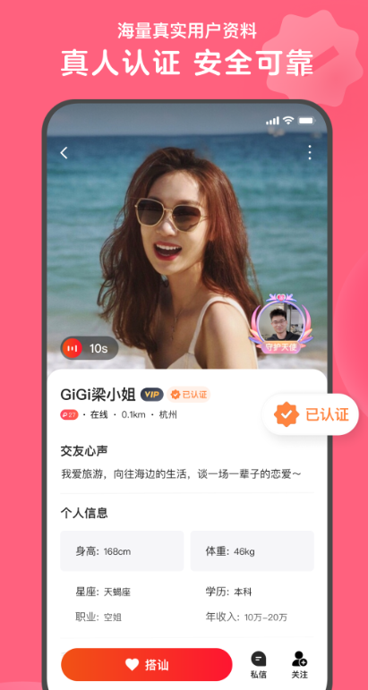 【真实社交】人工审核认证资料,真人及实名认证过的用户均有标签,海量真人用户等你来认识