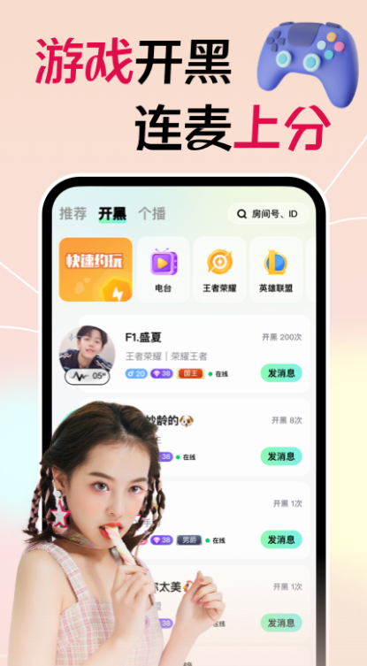 【游戏开黑】找大神王者开黑、找萌妹组队吃鸡,极速匹配到人美声甜的小姐姐,帅气温柔的小哥哥们一起玩游戏~