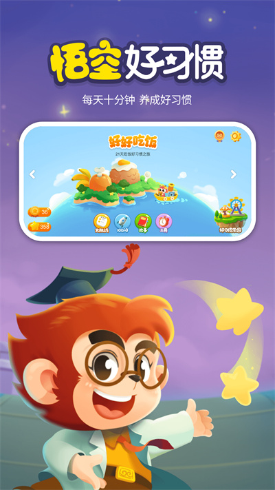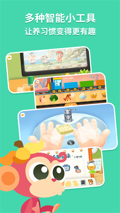 《悟空好习惯》是一款工具软件。目的是辅助家长让孩子养成良好的行为习惯。我们通过提供ai计时器,亲子剧场,互动绘本等各种工具,让孩子养成独立、自信、专注的好习惯。