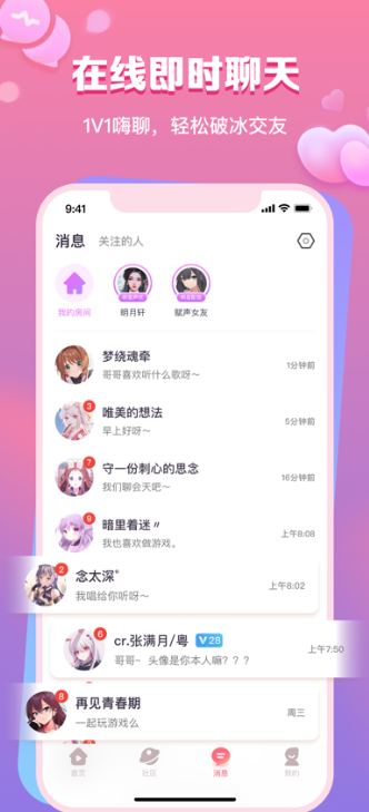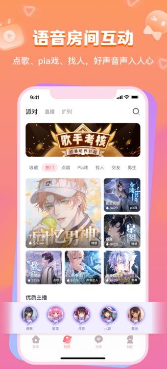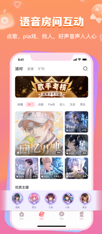 聚集了众多声音爱好者,在社区房间里即时找到你喜欢的声音达人,与达人零距离互动。