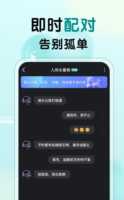 1、软件可以通过在线匹配的方式,来为你寻找与你志同道合的朋友;