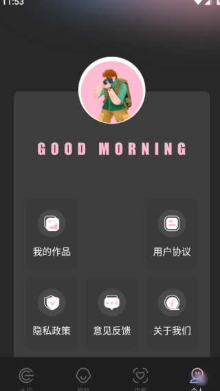 4、进入个人中心可查看所有的往期作品,提供完整版的用户协议与隐私政策。