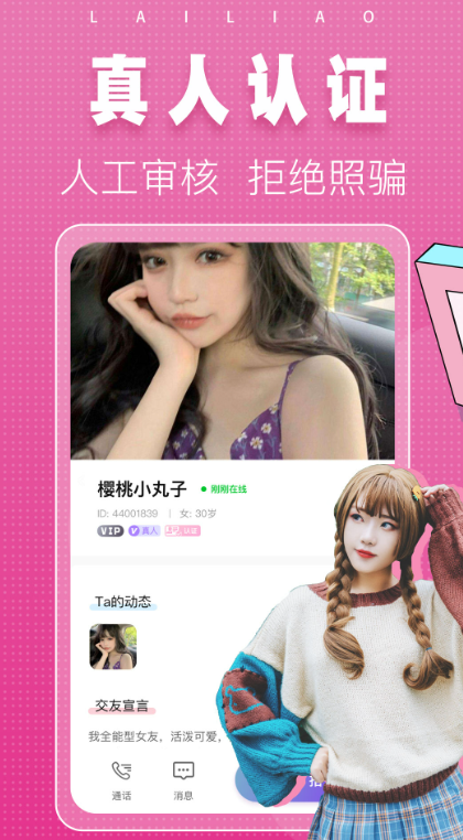 【真实用户】用户审核严格,具有真人认证标志即可放心热聊,同城来聊拒绝机器人陪聊,信息真实可靠,拒绝照骗