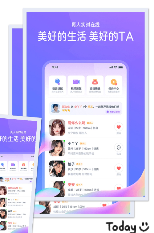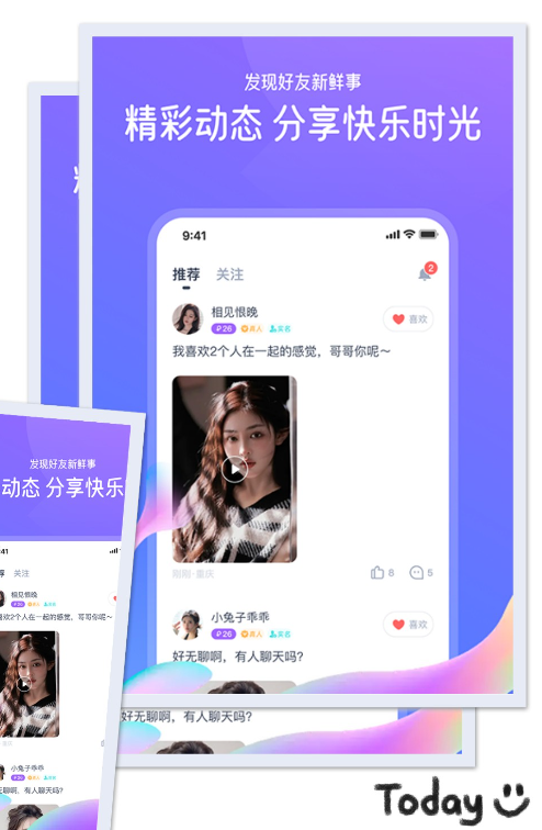 2、智能地推荐符合用户口味的小伙伴,打造更多意气相投的好友关系;