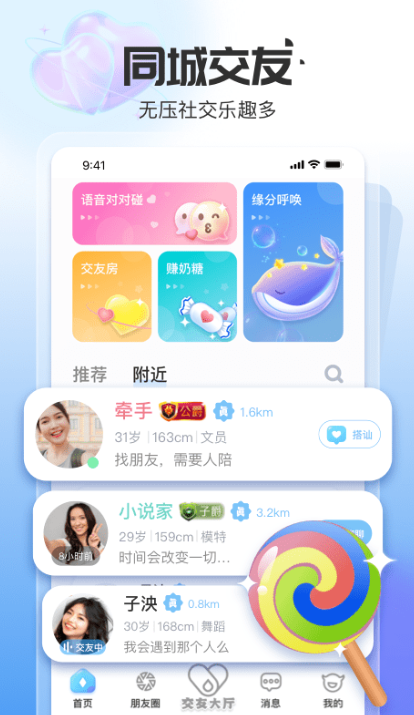 给糖社交app是一款靠谱的社交软件,这里汇集了全国各地的单身用户,所有的用户都是通过实名认证的,在这里一键开启匹配寻找志趣相投的TA,还可以开启定位和附近的好友一起线下组局约饭,感兴趣的用户记得来yx007下载!