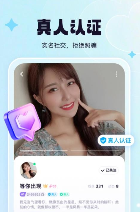 2、为保障用户安全,相觅APP推出视频认证功能,让用户可以通过视频认证方式证实自己的身份;