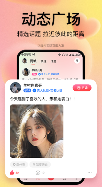 提供了一个安全、便捷、快速的交友交流平台,使距离不再是一个阻碍,让用户可以随时随地交友、分享生活,让使用者更有信心主动邀请陌生人成为好友。