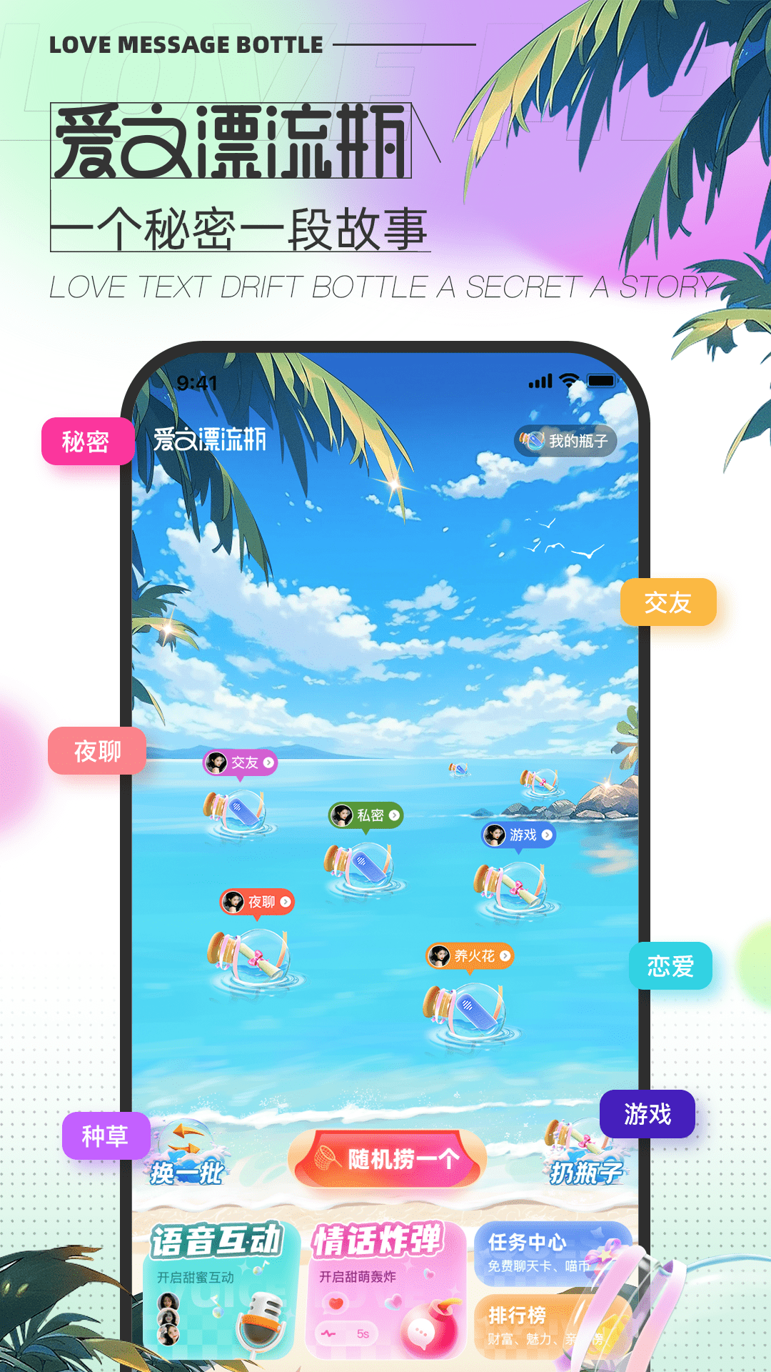 1、独特的漂流瓶功能,为用户提供更加刺激的交友体验;