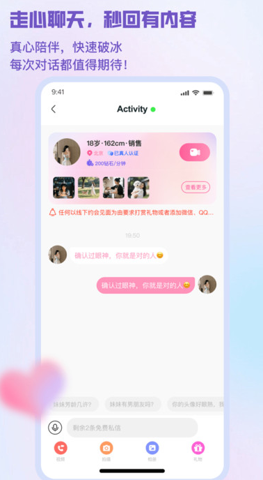 2、不仅可以单纯语音聊天,而且还能在线进行视频聊天互动,防止被骗被坑。