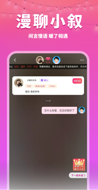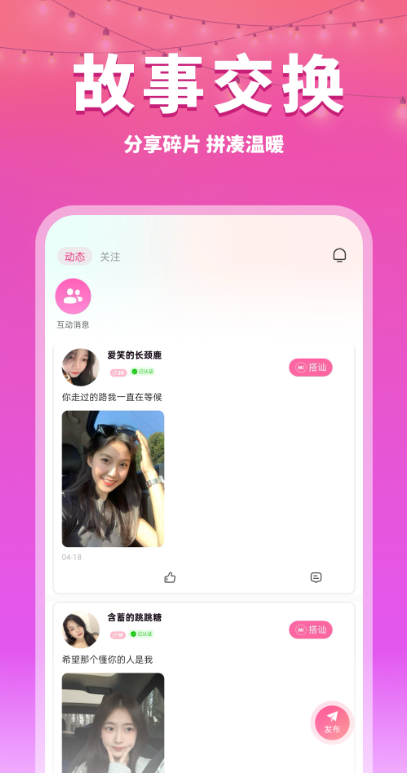 1、独创交友模式,打造真实情感交友,说出你的心声,寻找那个对的人;