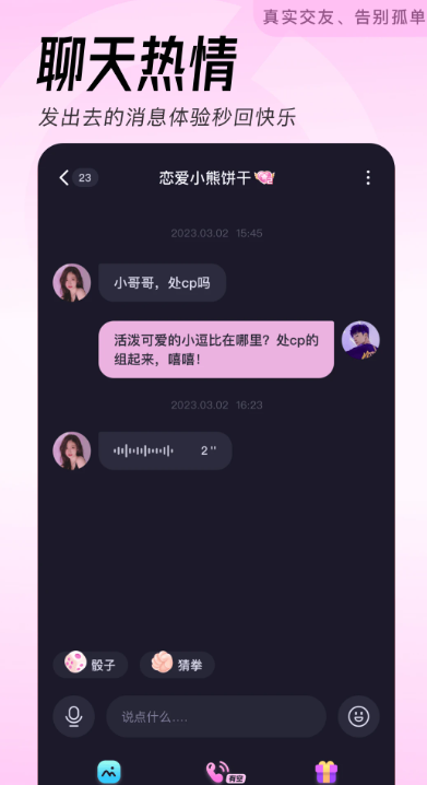 这里聚集了众多可爱的小哥哥小姐姐。在这里,我们可以选择自己喜欢的风格,轻触匹配按钮,能轻松遇到那个有趣的TA,再也不用担心没有朋友了。