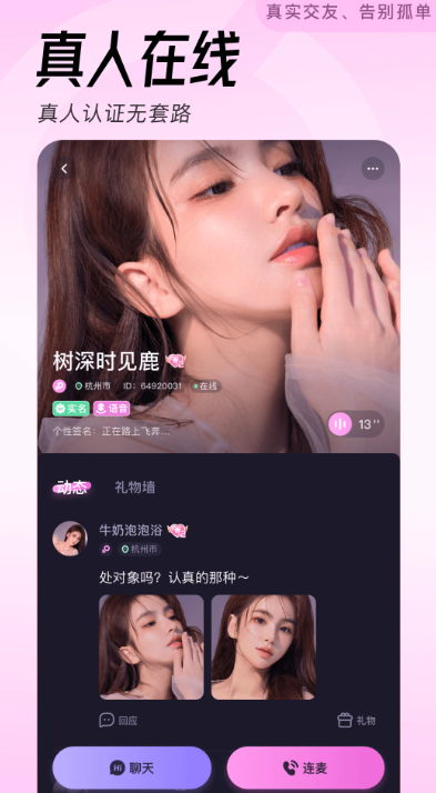 3、让你享受真诚社交环境,双重验证审核,无论什么时候,都有人陪你聊天。