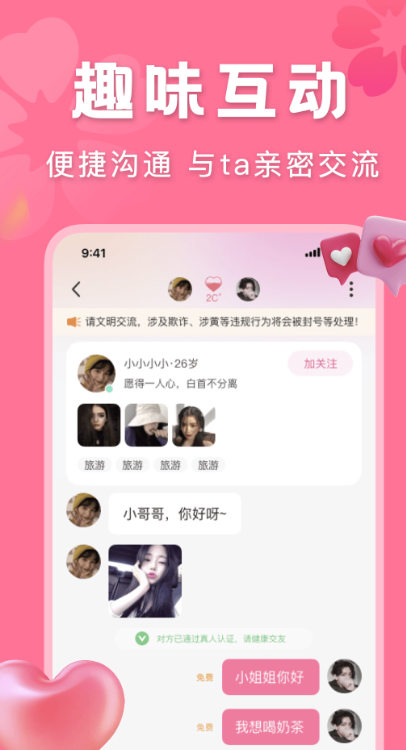 3、通过多样的聊天和认证,多样的亮点,在使用时候拒绝虚假信息。