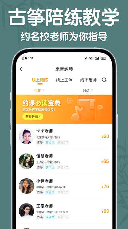1、多项考级预备课程,帮助用户快速提升筝艺水平,参加考级考试;