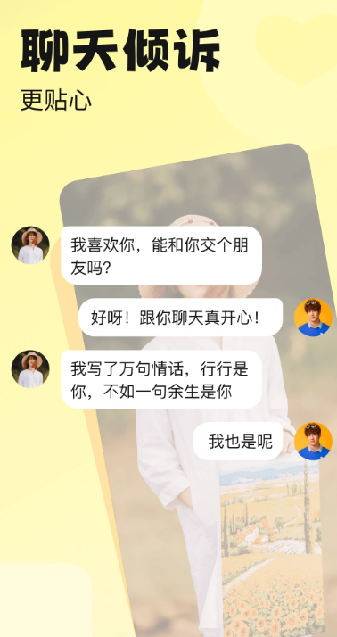 【聊天倾诉】智能AI匹配算法,快速推荐适合您意向的单身异性,千万在线用户,聊天回复率高,回复及时快速。
