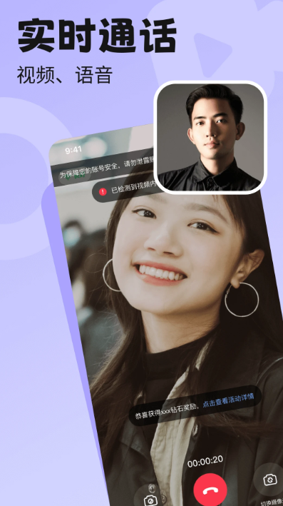 【实时通话】系统智能匹配附近同城好友,自由选择心仪异性线上交友聊天,遇见附近有趣的灵魂伴侣,告别单身。