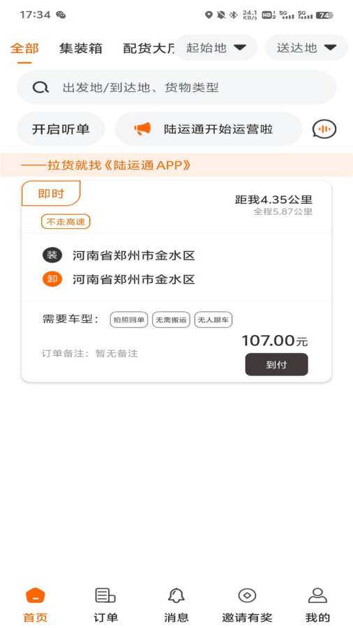 陆运通(com.rykj.luyuntong)是一款高效的物流运输平台,用户可以在这里享受到非常不错的物流服务,这里聚集了海量的物流订单,用户可以根据自己的情况进行相关的接单操作,在平台交易也是非常让人放心的,有需要的用户现在就来下载吧!
