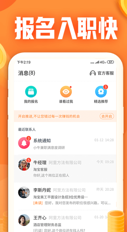 4、合适的兼职可以及时在线报名,也可以快速在线参与互动。