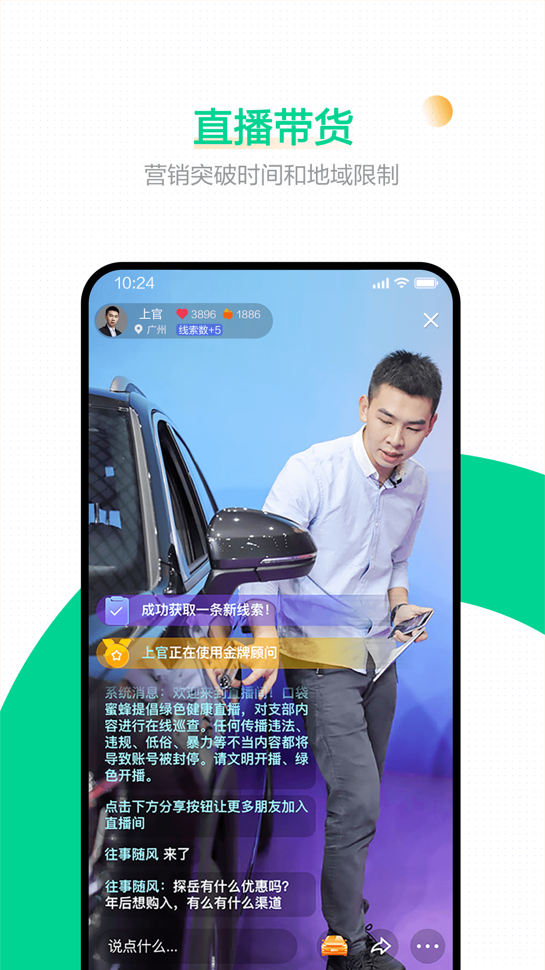 口袋蜜蜂app官方正版是一款非常实用的手机营销软件,用户可以通过它轻松地制作出具有创意的热点海报、文章推送,营销快人一步,同时还有很多汽车销售技巧帮助销售顾问提高销售业绩,让客户不知不觉中记住你的广告。它还是一款吸单神器,采用裂变传播式引爆朋友圈,轻松推广分享素材和商业名片,让您不错过一个潜在客户。