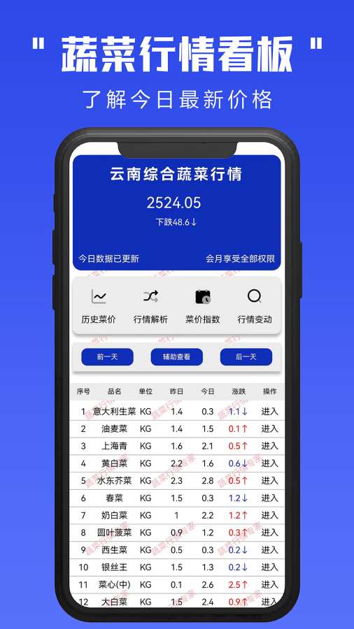 3、在线可以获取全国的蔬菜行情,了解价格波动数据,提供行情分析。