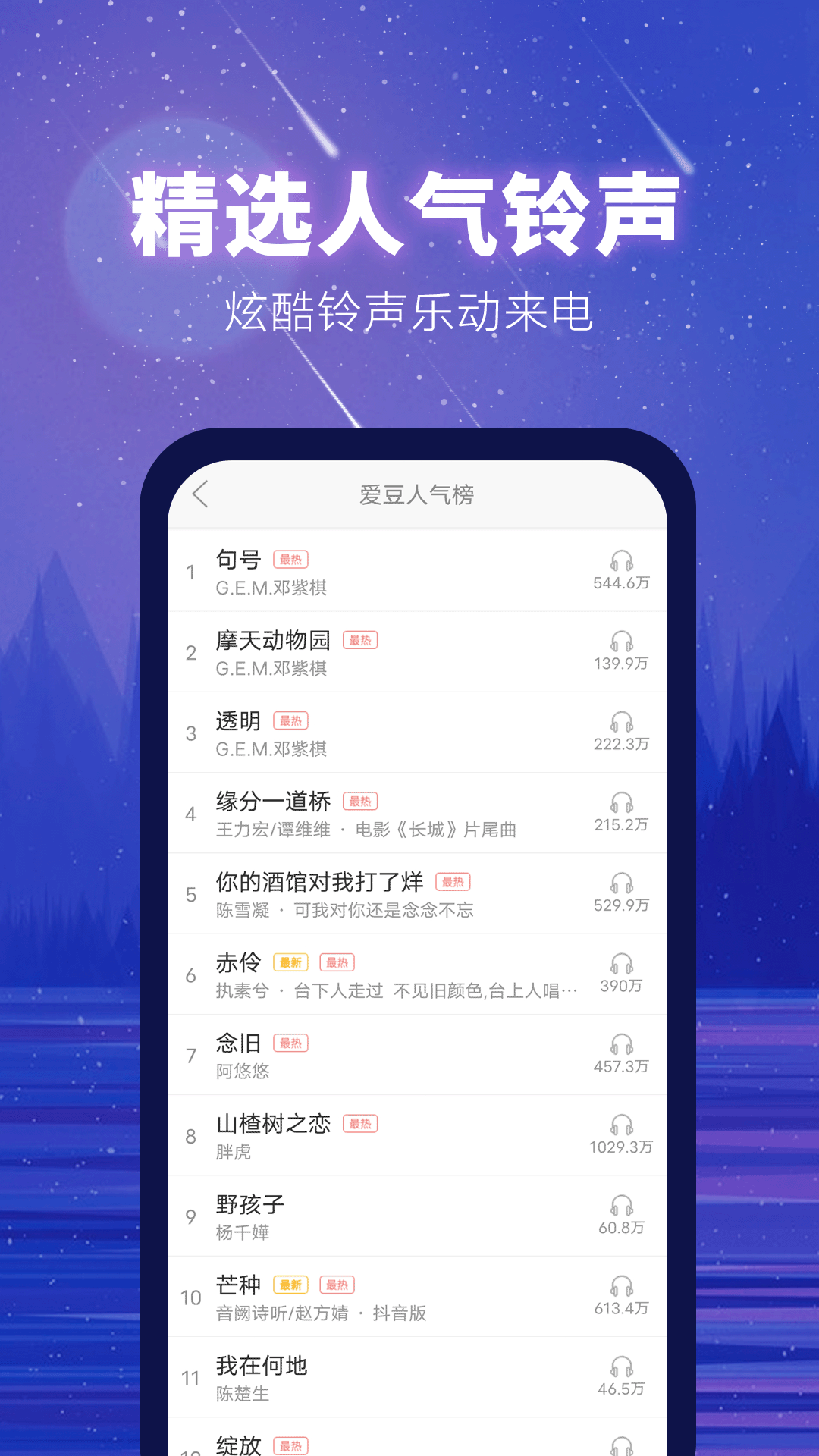 真正的免费铃声彩铃大全,当下最火热铃声彩铃免费换!