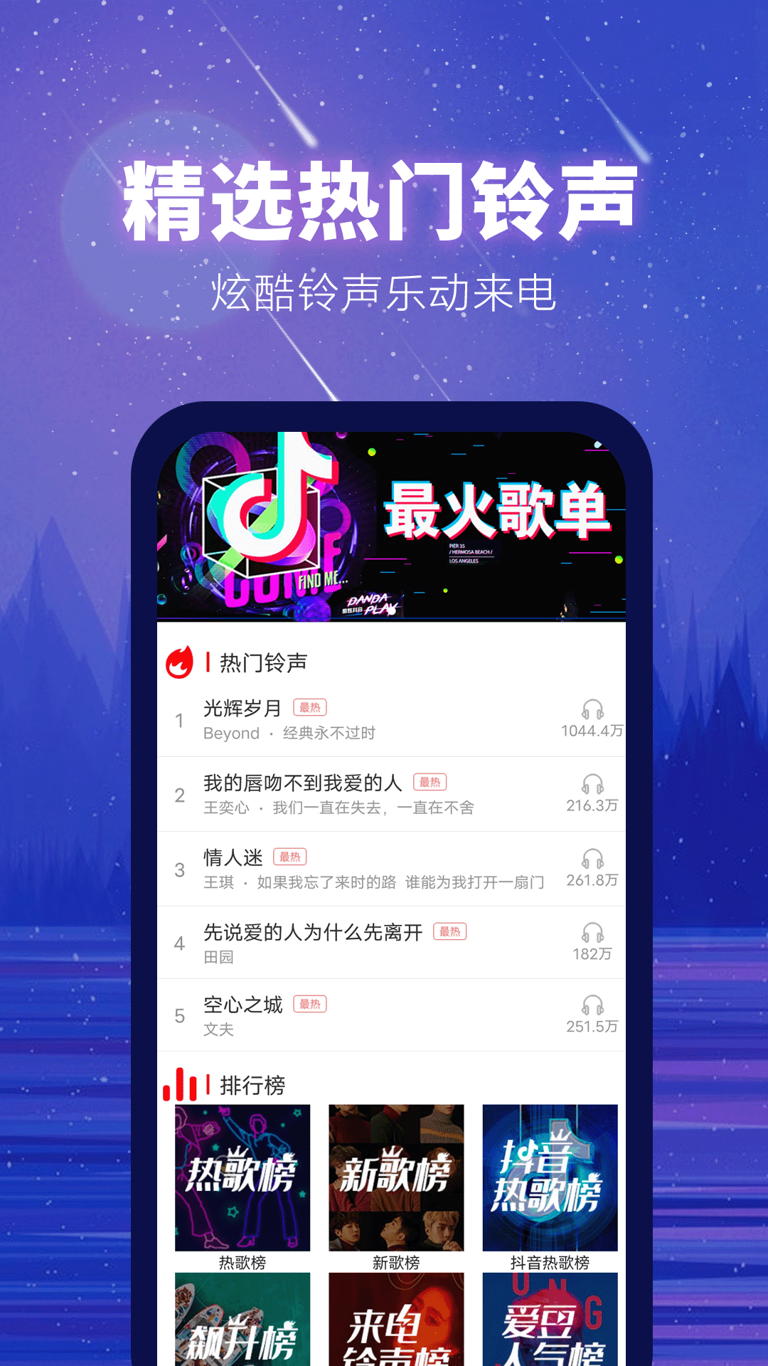 2、首页即呈现最新最热的铃声榜单,热门铃声一目了然,轻松找到心仪之选。
