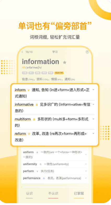同词根单词、近义辨析及关联单词,助您轻松关联记忆。