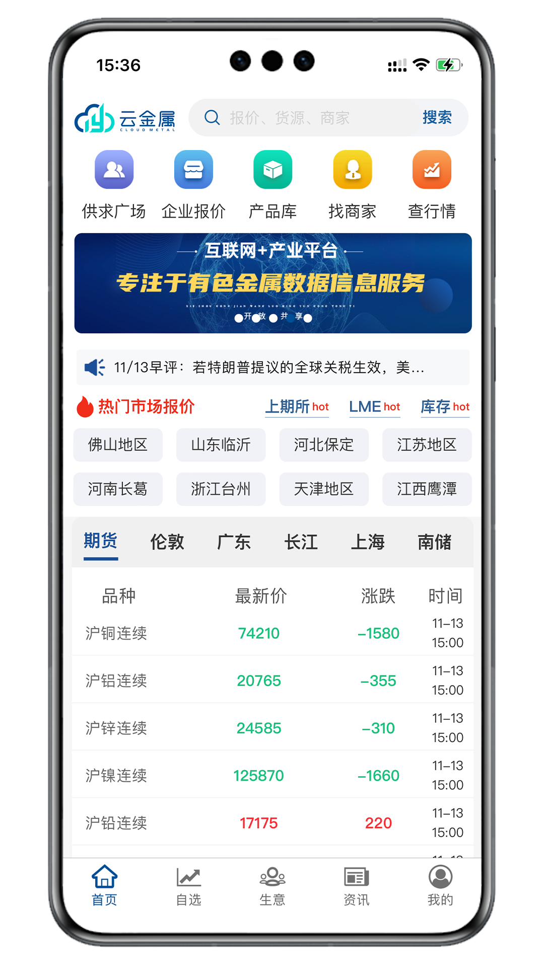 云金属APP是提供有色金属行业数据信息服务的专业平台。