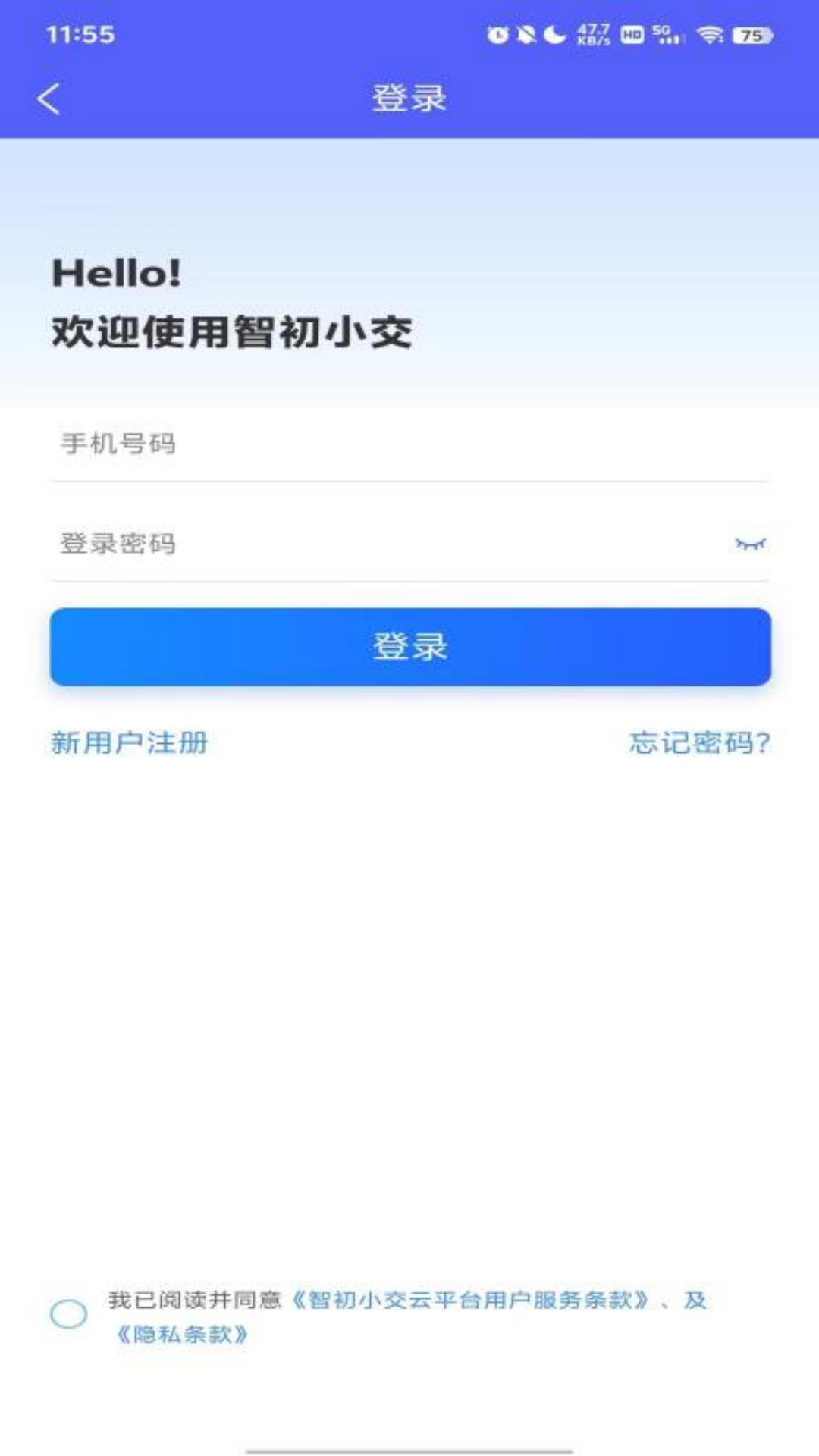 1、在各大应用商店搜索智初小交app,一键下载安装,查阅协议后点击同意。