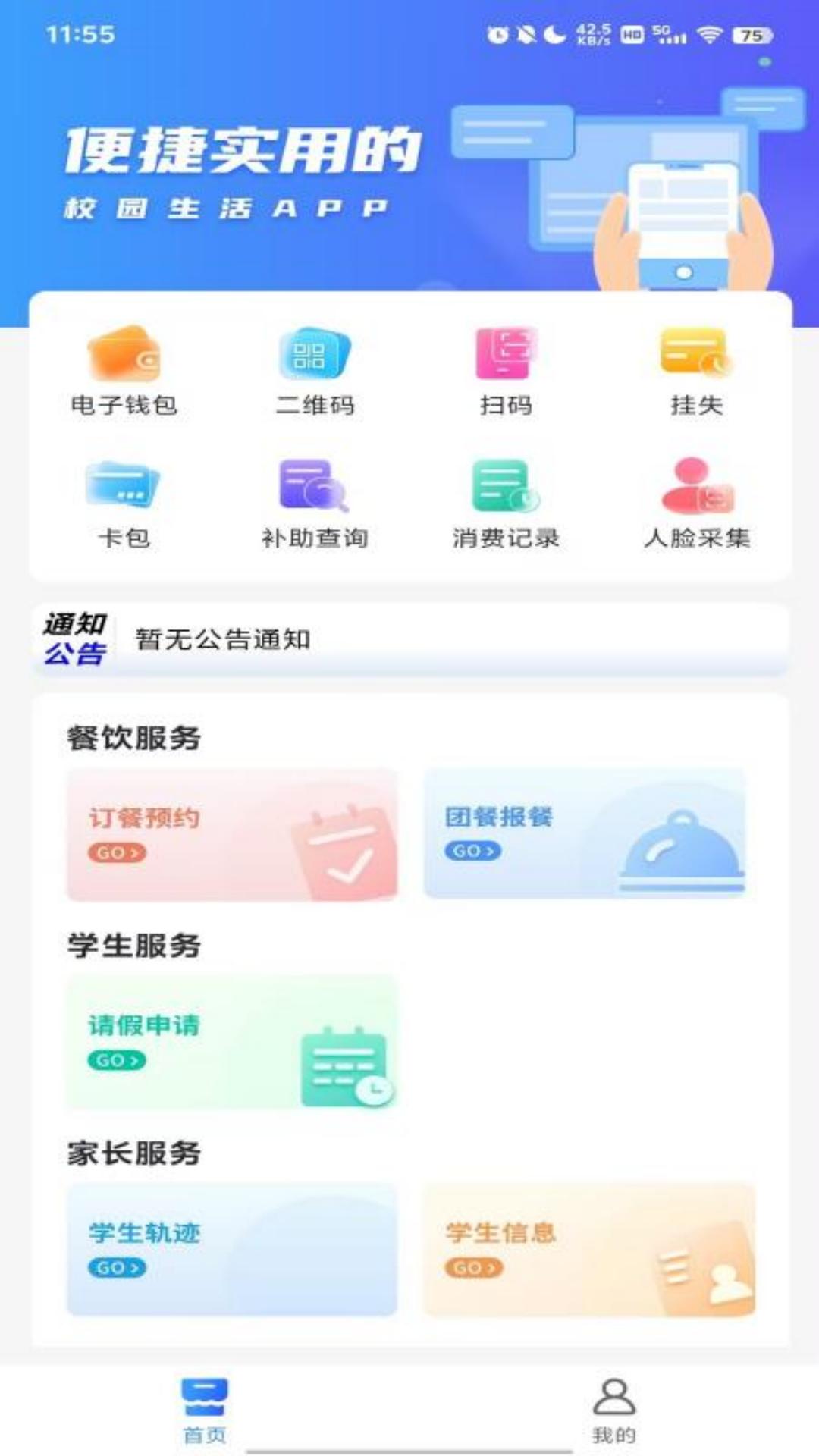 3、打开app清晰展示学生服务、家长服务及校园管理三大板块,根据您的需求,轻松找到所需功能。